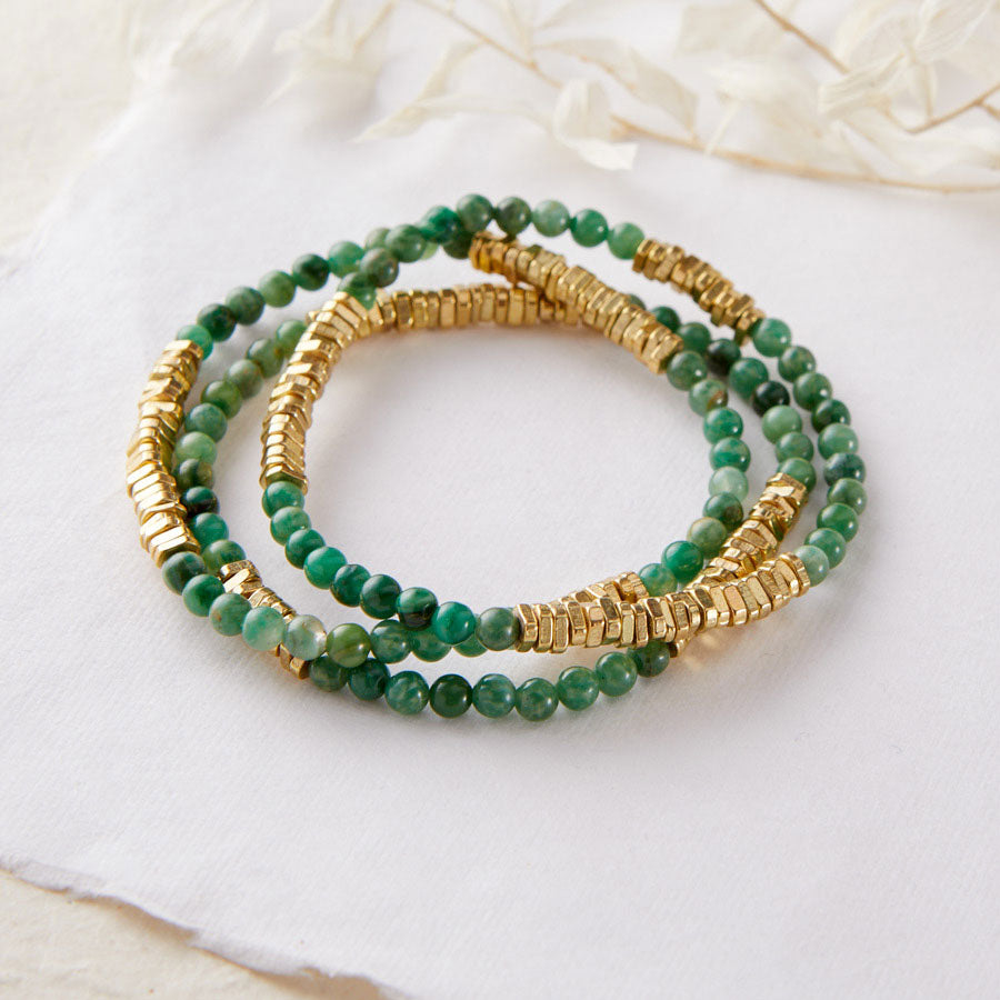 - Set of three african jade & gold-plated brass bracelets